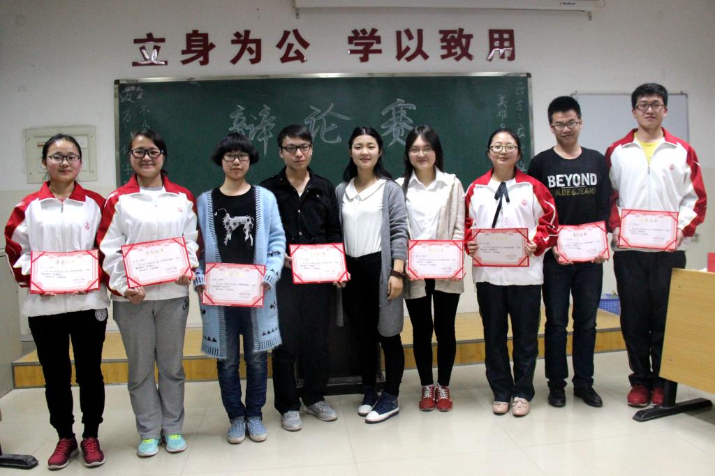 院第39届辩论队队长王田田为获得“最佳辩手”的同学颁奖