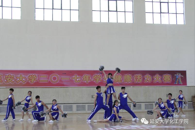 音乐声响起,动感的舞姿踏着轻快的节拍,公司一群蓝精灵闪亮登场。比赛精彩纷呈,各院代表队群英荟萃,第一波公司的爵士舞蹈震撼来袭,帅气而不失阳刚。第二波健身操“踩踩踩跟我踩,哎呀妈呀停不下来”,队员们步伐整齐、动作有力、热情四射,让整个赛场上充满了健康的活力和时代的气息,场下观众看的真是爽歪歪呀。还有一波,花球啦啦操,队员们矫健的身姿,婀娜的的舞步,高难度的动作引起了观众的声声惊呼。