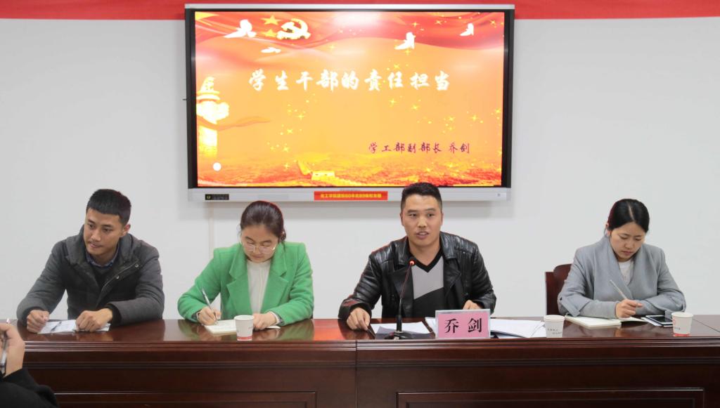 之后,乔剑老师提出了现在员工干部中普遍存在的问题:热情阶段性、功利化、官僚化,工作学习兼顾不佳等。希望员工干部们能进行更多的交流与学习,反省自身,做到不骄不躁,让老师放心,让同学满意,将继承与创新结合的带头示范作用,和大家一起努力,共同进步。