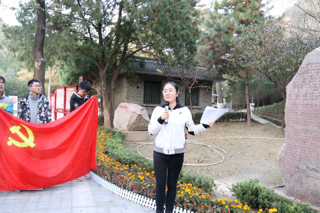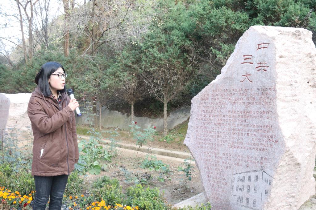 首先,一行人随申圆圆来到六块石碑前,员工代表熊东、张美琪、杨玮洁、许王震、吕扬以及研究生代表杨娇莉同志分别为大家介绍并传达了从中共一大到中共六大的历史背景和会议精神,仔细领悟讲解内容,我们仿佛回到了充满着奋斗气息的红色年代,深刻体会到先辈们为了建设富强的新中国砥砺前行,艰苦奋斗的精神。
