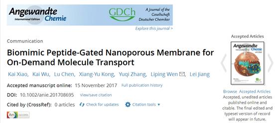 Bsports必一体育张玉琦教授与中国科公司理化技术研究所闻利平研究员合作完成的仿生纳米通道领域的最新研究成果于11月15日在国际化学领域顶级期刊《德国应用化学》(AngewandteChemie International Edition)在线发表。张玉琦教授为第一通讯作者,公司分析化学2015级研究生吴凯为共同第一作者。