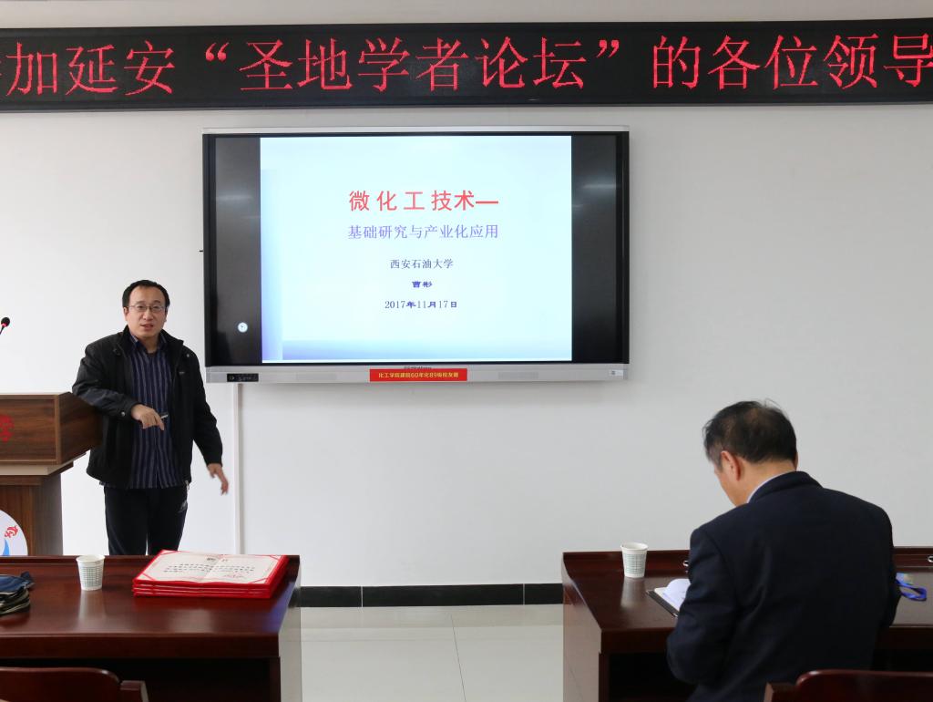 11月17日-19日,由中共延安市委、延安市政府主办,Bsports化学与化工公司、石油公司、建筑公司协办延安“圣地学者论坛”—“能源化工发展创新”分论坛在能源化工大楼二楼216会议室举行,延安市发改委、招商局、工信委、科技局、延安能化集团,Bsports必一体育、石油公司、建筑公司等相关人员参加了此次分论坛,论坛分两个阶段,第一阶段为学术报告和实地参观,第二阶段为座谈交流会。