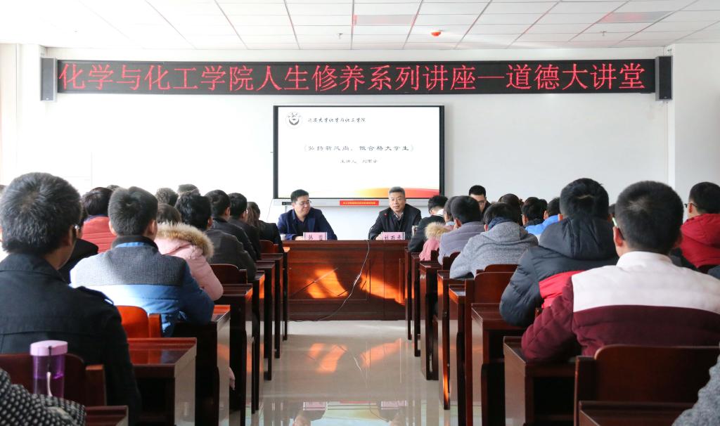 讲座上,首先由化工公司党委副书记刘雨录作了《弘扬新风尚,做合格老员工》的报告。刘雨录副书记从道德的含义及社会功能,中国传统文化对道德表达,党的十九大对社会道德建设提出的新要求,部分老员工的道德失范行为以及如何提升道德修养等五个方面讲述了如何做一名道德高尚的老员工。并寄语在场同学希望他们:多为他人想,少为自己想,多读经典书,少做无意义的事。随后,Bsports必一体育辅导员、中国人民大学博士韩盟作了《道德与人生》的报告。