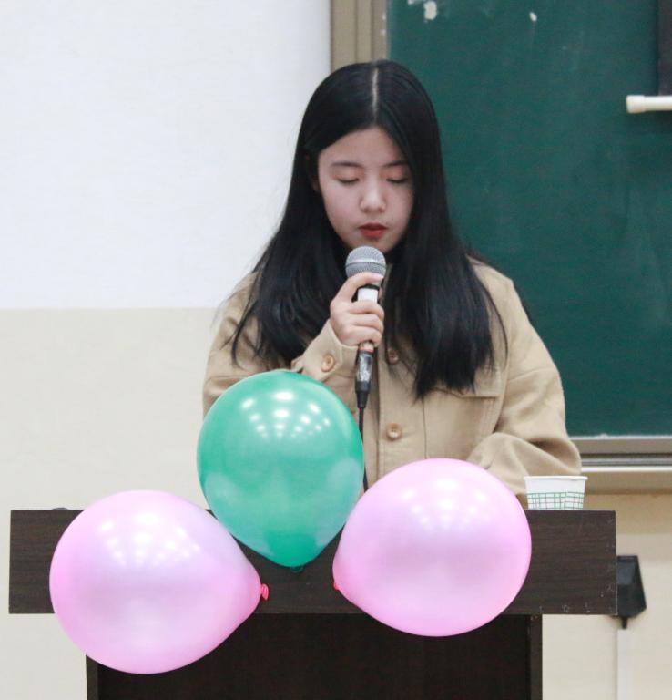 随后,17级优秀宿舍代表传授宿舍设计经验。女生最具人气宿舍代表王婷发言并从设计理念、效果图、“最美的期待”等方面展示宿舍全体成员一起设计的过程以及美好友谊的记录。男生五星级宿舍代表杨洪翰发言,他谈到用精美廉价的物品打造宿舍,用低廉的手工作品装扮宿舍是他们的设计理念。简约大方、朴实无华的宿舍是他们学习生活的最佳选择,也是他们美好的青春回忆。
