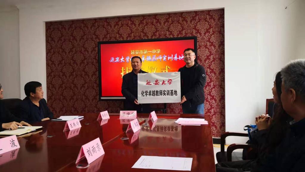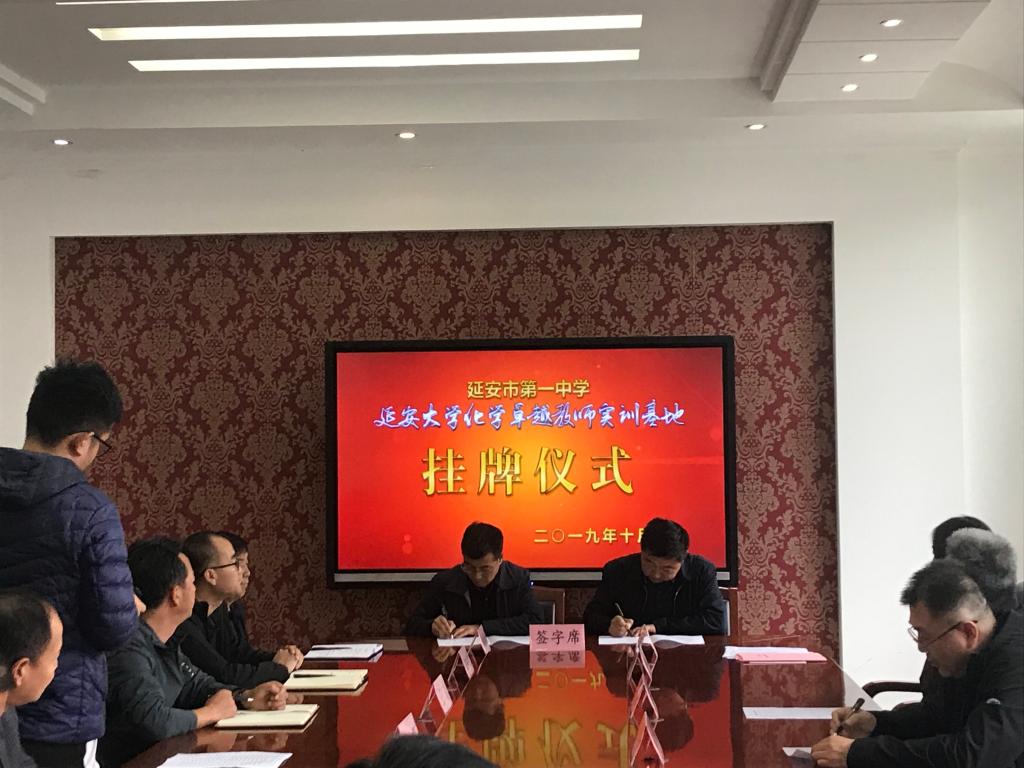 10月9日上午,公司与延安市第一中学在市一中会议室举行了“化学卓越教师实训基地”揭牌仪式。市一中党委副书记、纪委书记薛文辉,副董事长齐永廷、王波,工会主席王学东等,公司教务处副处长党子奇、实践科科长王华,化工公司党委书记舒永安、副书记刘雨录、化学系主任陈小莉、实验秘书王文山、联合实习带队教师崔华莉以及正在该校实习的公司各专业实习生等共40余人参加了揭牌仪式。揭牌仪式由延安市第一中学副董事长鲁玮主持。
