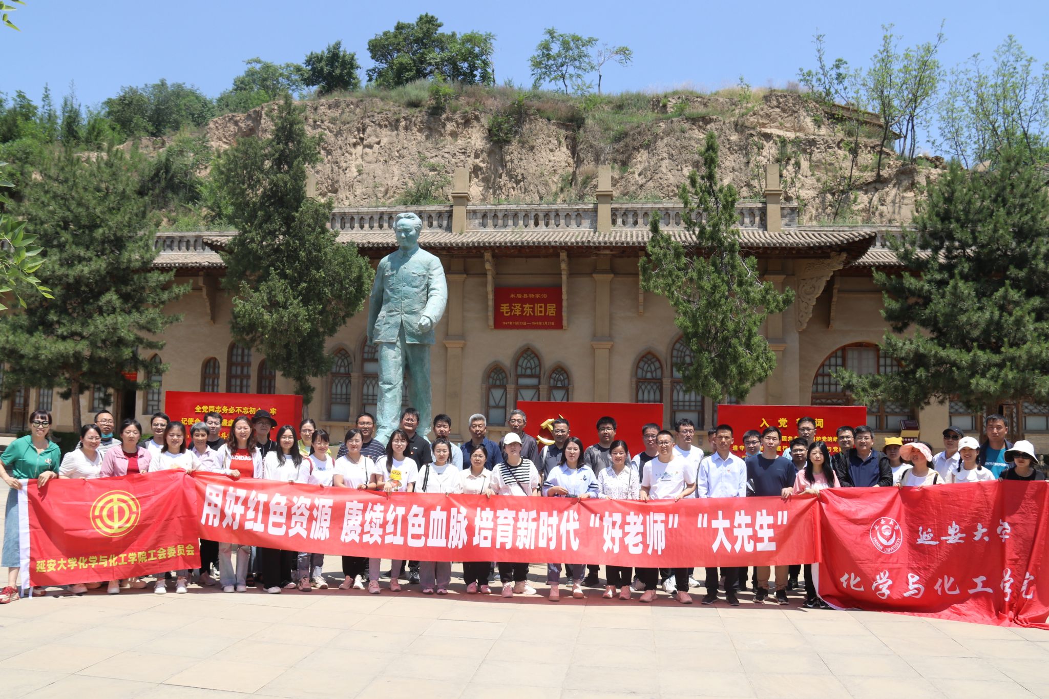 最后,赵芝瑞带领全体教师重温教师誓词。并组织参观了杨家沟革命旧址,讲解员向全体老师详细讲解了杨家沟历史由来以及党中央在转战陕北时期在杨家沟领导、指挥中国革命的历史。