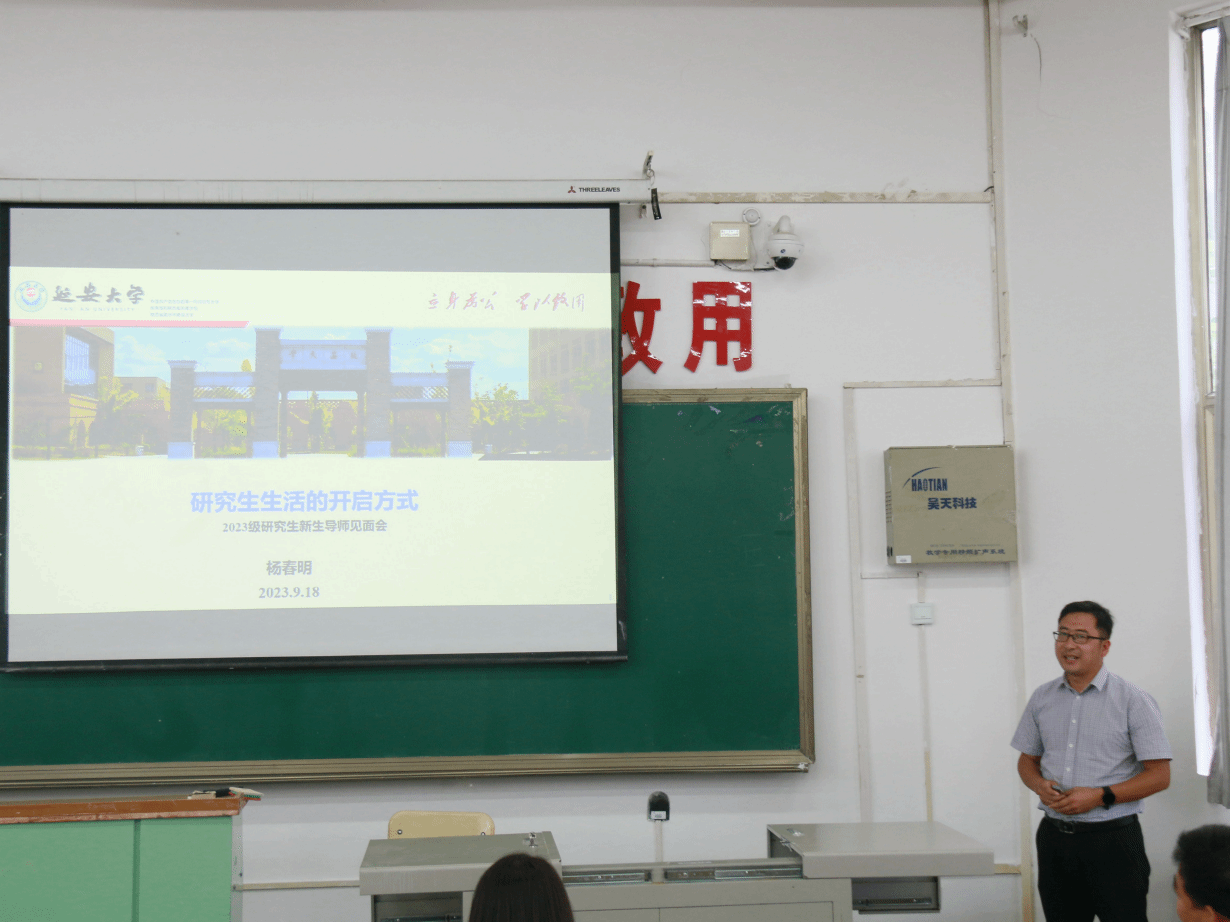 指导教师代表任宜霞教授从明确目标、学会研究型的学习方式、建立和睦的师生关系、强健体魄,修身养性、尽快完成研究生的心理过渡等五个方面对2023级研究生新生进行了勉励,对研究生在学习阶段出现迷茫和倦怠进行了疏导,并从指导教师要严格律己,方可育人的角度要求自己,使公司的研究生教育事业蒸蒸日上。指导教师代表杨春明副教授以“研究生生活的开启方式”为题,从文献检索及阅读、实验技能开启方式、与导师的交流和进一步深造等四个方面向参会的同学介绍了如何进行学术研究、合理规划时间及培养自身科研兴趣等,早日成长为一名优秀的研究生。