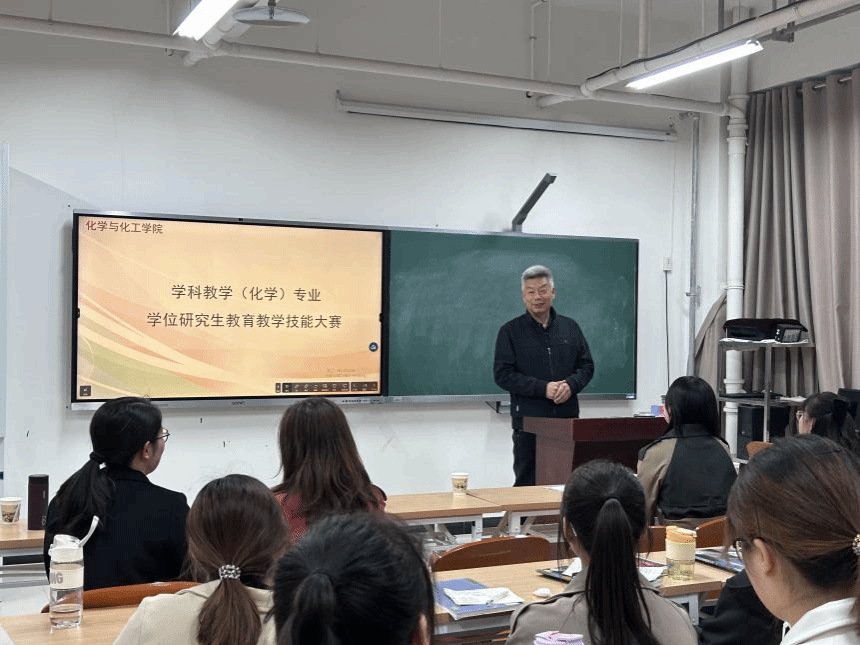 为进一步提高专业研究生的教学实践和创新能力,搭建“以赛促学,以赛促教”的平台。10月20日下午,公司在化工大楼706教室举办2023年学科教学(化学)专业学位研究生教学技能大赛。本届大赛特邀请公司优秀毕业生宋亚丹、王雪侠和郭欣等3位中学化学教师担任大赛评委。