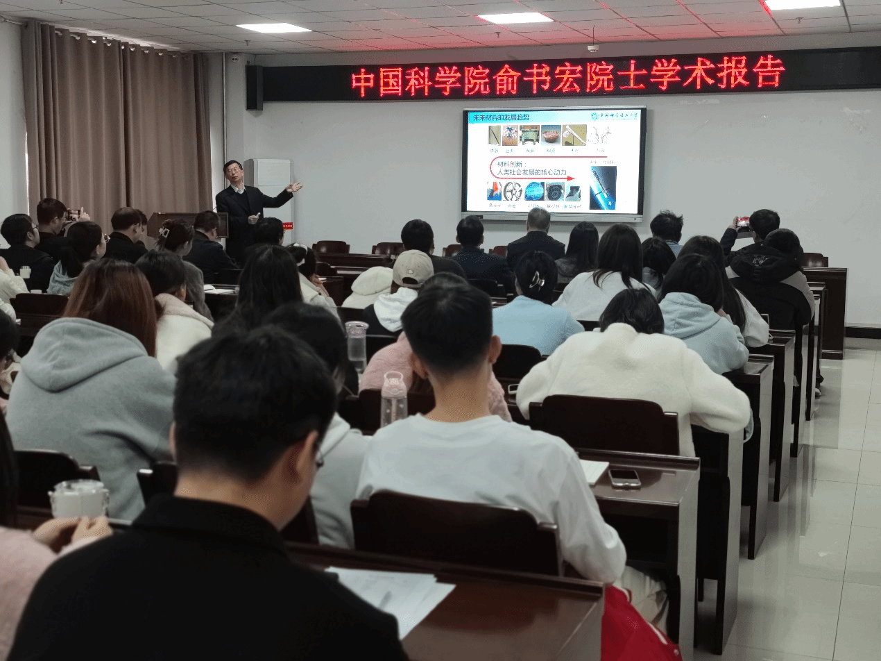 报告会上,俞书宏院士做了题为“仿生材料与交叉科学”的学术报告,俞书宏院士介绍了仿生材料的起源和发展,以及它与交叉科学研究结合的未来发展。俞院士以自然界中的生物矿物为引,介绍了一系列生物结构材料和仿生材料的研究,重点讲解了从自然界中贝壳的结构到仿生合成人工珍珠母的过程、从蚌壳的铰链的结构到可弯折的生物陶瓷过程,并提出了“细菌工厂”的概念,即利用细菌低能耗、高精度、低成本地合成材料。俞院士语言通俗易懂,深入浅出,内容丰富详实、科学严谨,引起与会师生浓厚兴趣和热烈讨论。