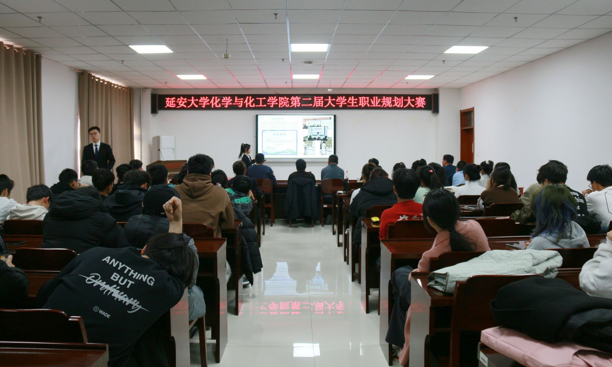 本次大赛的主题是“筑梦青春志在四方 规划起航职引未来”,大赛由成长赛道和就业赛道两个赛道组成,设主题陈述和评委提问两个环节。上半场进行成长赛道比赛,郭俊、张佳怡、杨卓颖、陈墨、田园、王可心、张友珍、张如等8名选手从职业发展规划、实现职业目标的具体行动和成果等方面对自己的职业生涯报告进行了现场陈述和展示,评委结合选手的现场陈述展示进行提问,并从专业、就业市场、职业目标、生涯规划等方面提出了宝贵意见。下半场进行就业赛道比赛,韩少杰、李昭雨、姚钰琦、李仵萌等4名选手从求职意向、职业准备情况、通用素质和岗位能力等方面陈述展示了自己的求职简历,评委结合选手的陈述展示进行了提问和现场面试。参赛选手能够紧扣大赛主题,严格按照大赛方案精心准备,认真组织实施,展示现场表现自如,氛围良好。经过激烈的角逐,陈墨荣获成长赛道一等奖,王可心、杨卓颖、田园荣获成长赛道二等奖,郭俊、张佳怡、张友珍、张如荣获成长赛道三等奖,姚钰琦荣获就业赛道一等奖,李昭雨荣获就业赛道二等奖,李仵萌、韩少杰荣获就业赛道三等奖。