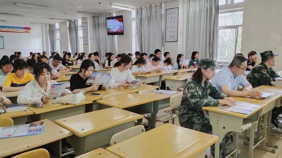 在征兵宣传环节,退伍老员工孙召、宗雅慧做了题为《携笔从戎 ,无上光荣》的报告,他们从应征入伍条件及要求、报名流程、老员工入伍政策和军营风采展示四个方面对老员工入伍政策和军营生活做了讲解和展示,报告翔实生动,感人奋进,激发了同学们强烈的爱国情怀和参军报国热情。