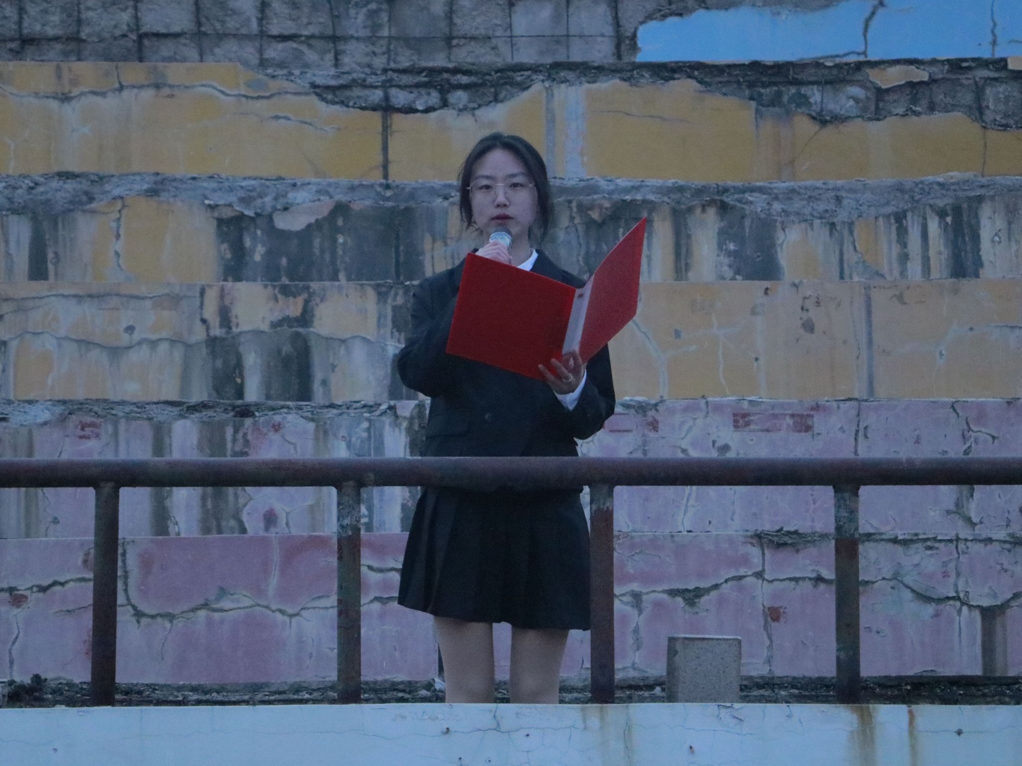 伴随着雄壮的《义勇军进行曲》响起,擎旗手将国旗挥撒在空中,五星红旗冉冉升起,全体师生行注目礼,庄严肃穆的共唱国歌。随后员工代表尹书睿同学以“弘扬爱国主义,担当未来使命”为主题进行国旗下演讲。她表示青年应积极承担起促进国家发展、民族振兴、世界和平与进步的使命,投身于社会发展和国家建设的各个领域,为实现中华民族伟大复兴贡献自己的力量。
