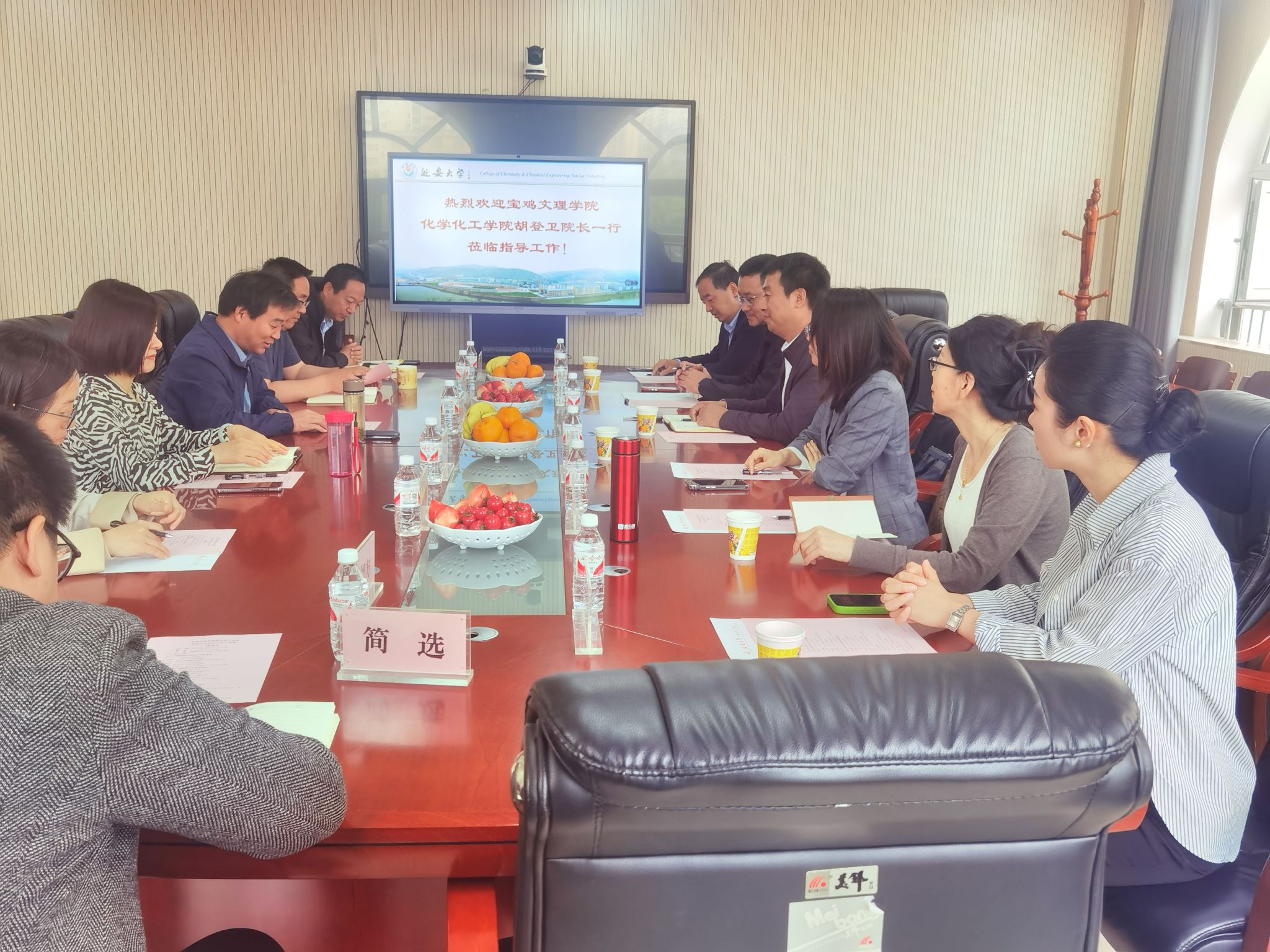 5月9日上午,宝鸡文理公司化学Bsports必一体育胡登卫经理一行6人来公司考察。经理张琰图、公司党委副书记赵芝瑞、教学副经理王潇及公司部分教师代表在化工大楼215会议室与胡登卫经理一行6人进行座谈交流。