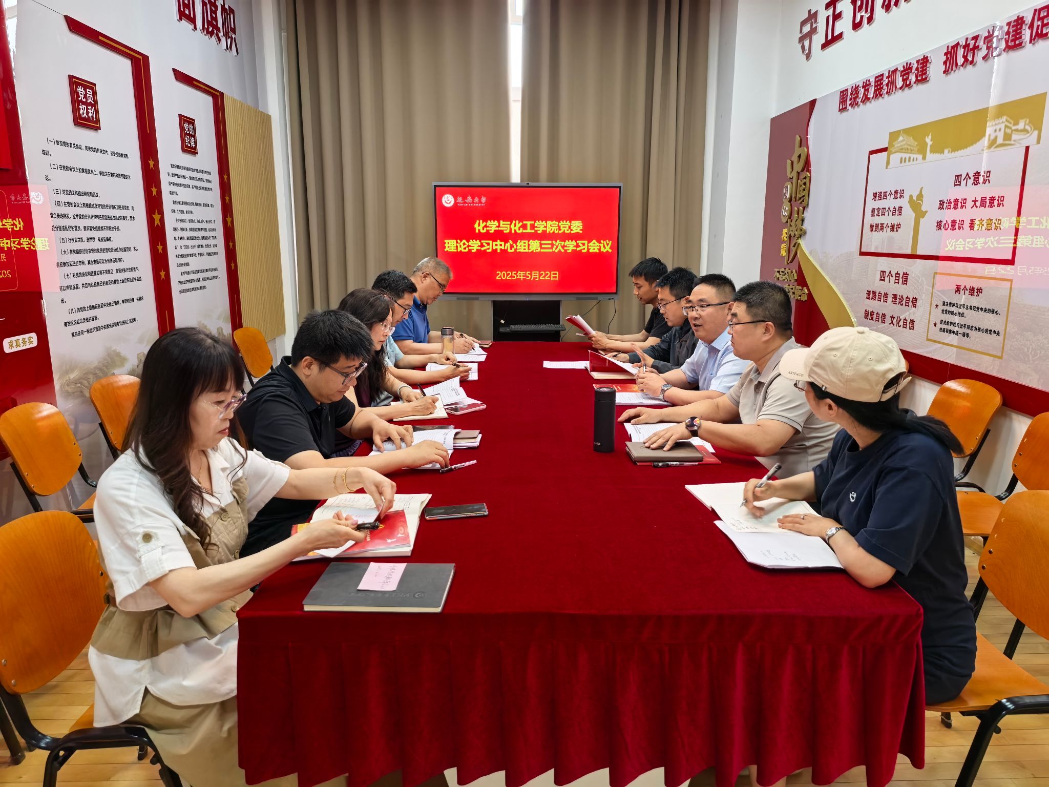 5月22日下午,公司党委理论学习中心组在党员活动室召开2025年第三次集体学习会议。全体党委委员、组织员、团委书记以及办公室主任参加了会议。会议由公司党委书记赵芝瑞主持,